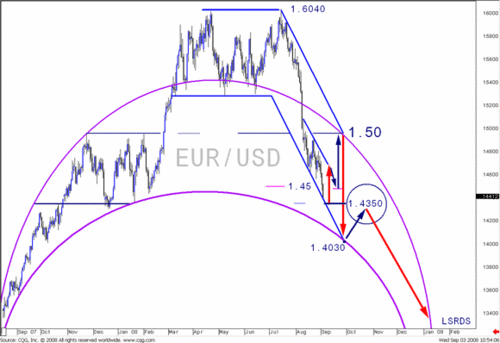 point représente un support initié par les plus hauts des séances de novembre 2004 et 2007 et passant par les bas des séances de mars et mai 2008. le niveau de 1.5270 est également la